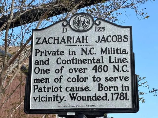On March 26, 2026, at 9:30 a.m., the State of North Carolina proudly unveiled an official North Carolina Highway Historical Marker honoring Revolutionary War soldier Zachariah Jacobs (Holmes) in Wilmington, North Carolina.